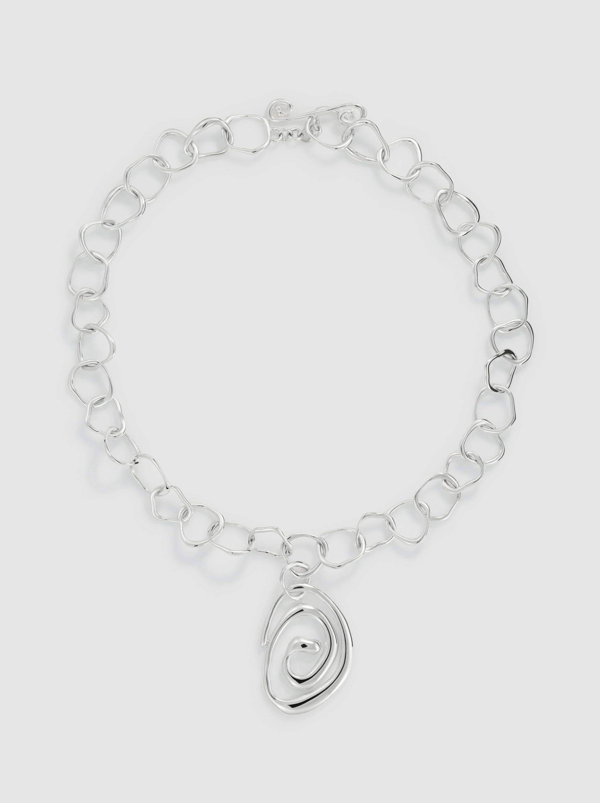 Chain necklace, assembled from hand made links/ clasp and a large spiral pendant
