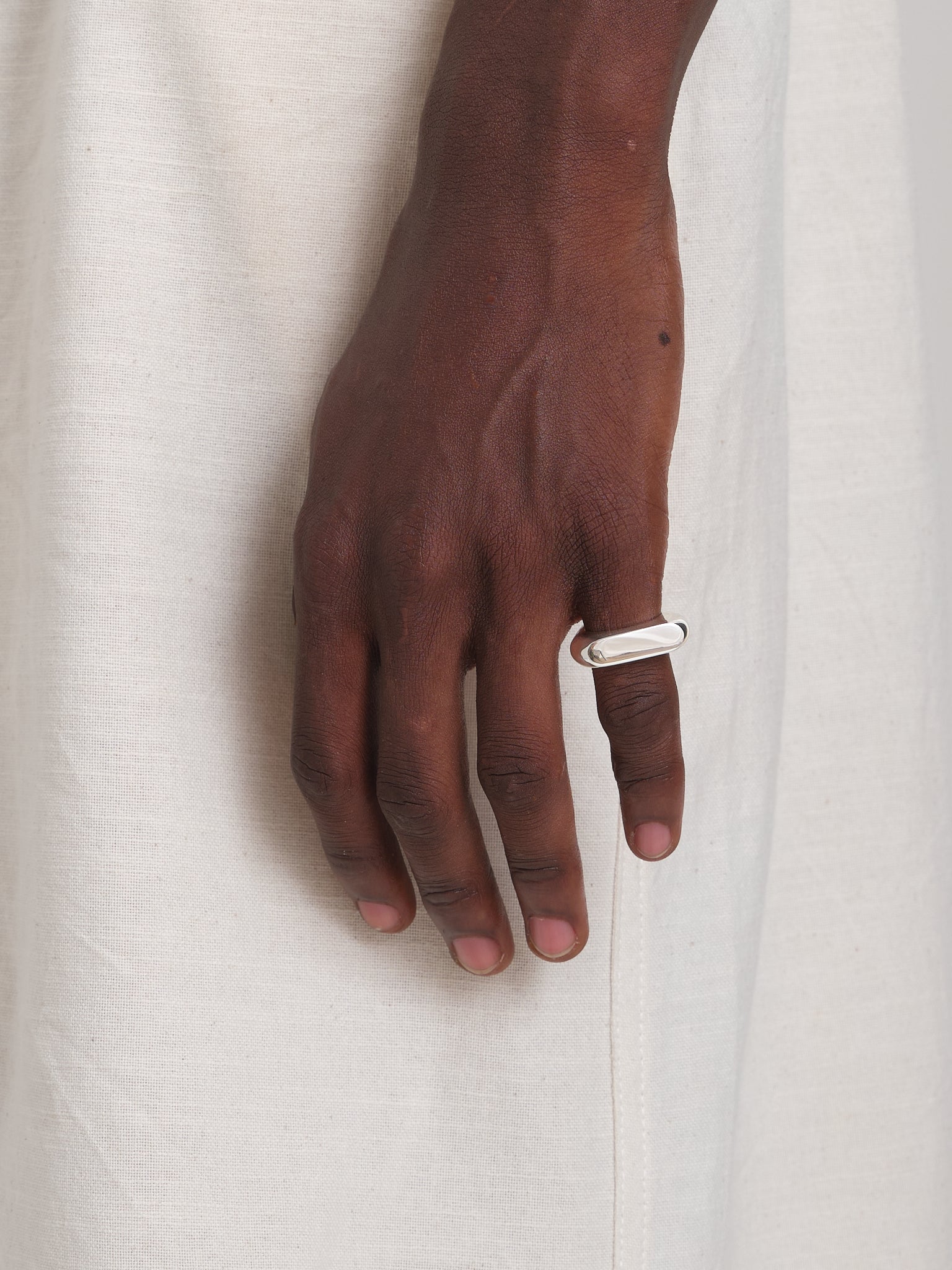 Designed to slot neighboring fingers either side, guided by the natural form of a hand - making it a really comfortable way to wear a chunky ring.