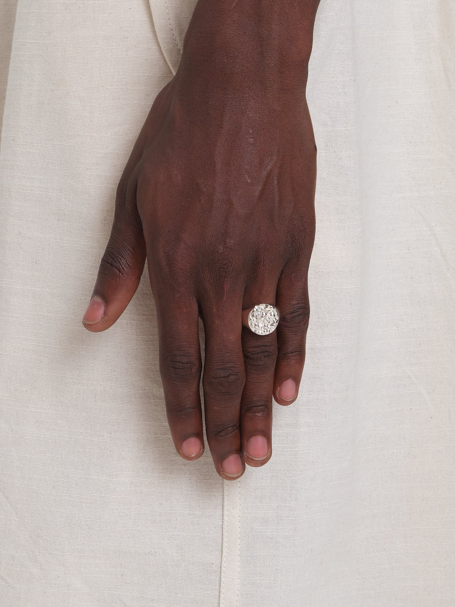 A piece of avocado skin has been moulded and cast into a ring - transforming a part of nature, that would otherwise go to waste - into a wearable object that will last forever.