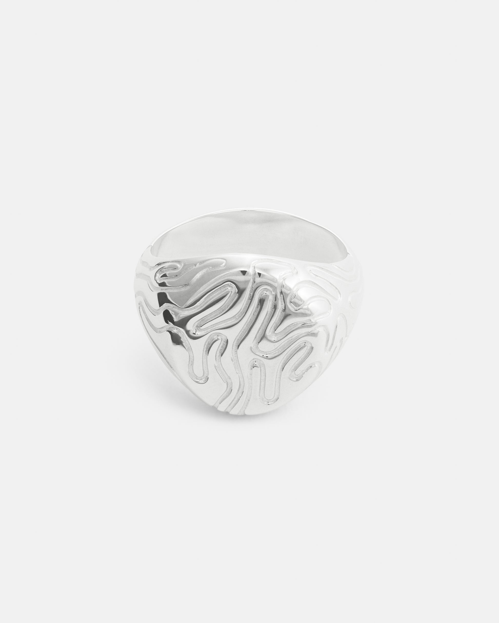 the big globe signet is an inflated version of our globe signet. it's a chunky ring covered with hand drawn line work, influenced by nature's irregular patterns and textures. it has been designed and made in London, and comes stamped with full british hallmarking.
